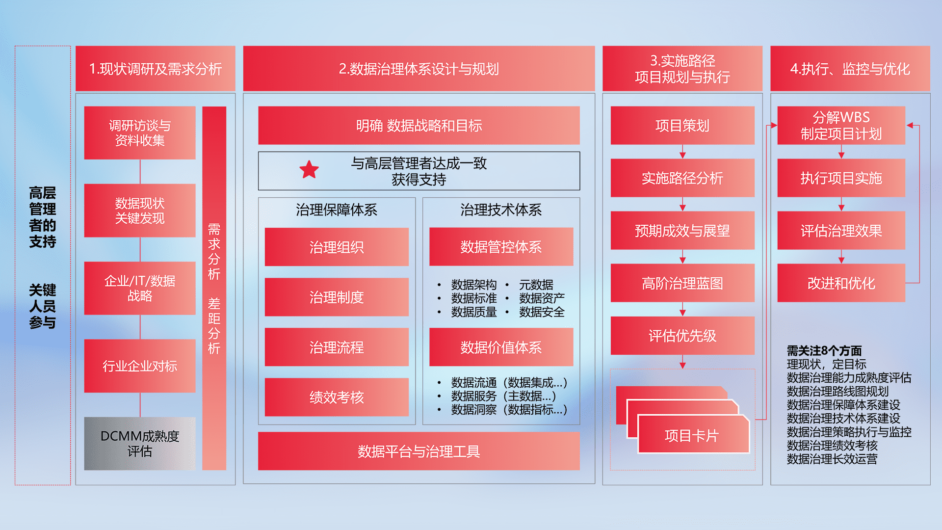 制定并执行统一的数据标准,,,规范数据定义和格式,,,消除冗余和不一致性,,,,实现跨部门和跨系统的数据一致性,,为企业提供标准化的数据基础。。